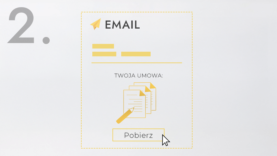 Po dokonaniu płatności na podany przez Ciebie adres e-mail zostanie wysłana wygenerowana umowa. Pobierz dokument na swoje urządzenie i przejdź do poniższych kroków.